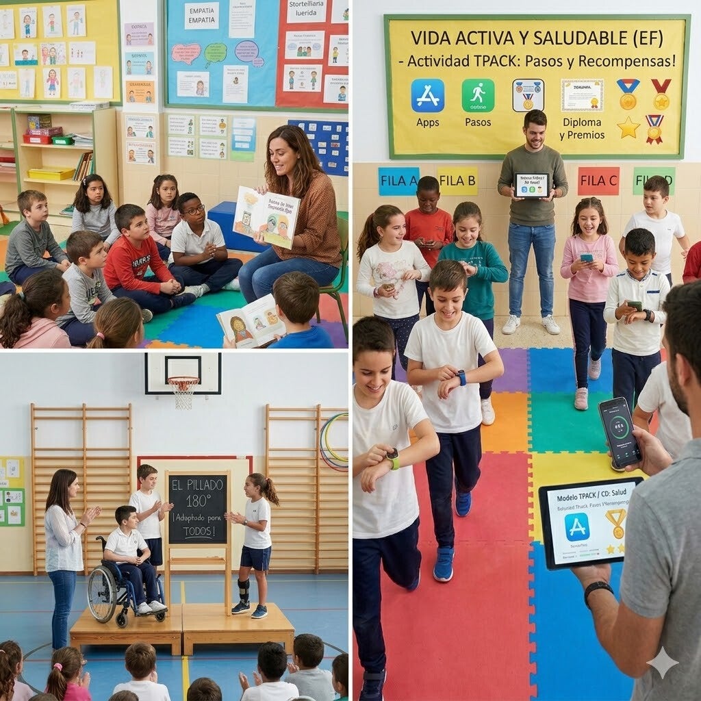 Durante la siguiente clase que tuvimos dicha semana realizamos por filas una actividad según el modelo TPACK, competencia digital, relacionada con el currículum de Educación Física, en el Bloque de Vida Activa y Saludable. La actividad que propusimos consiste en que los alumnos tenían que tener una aplicación en el móvil o reloj inteligente que mida los pasos y según el logro alcanzado reciben premios, fomentando la salud.