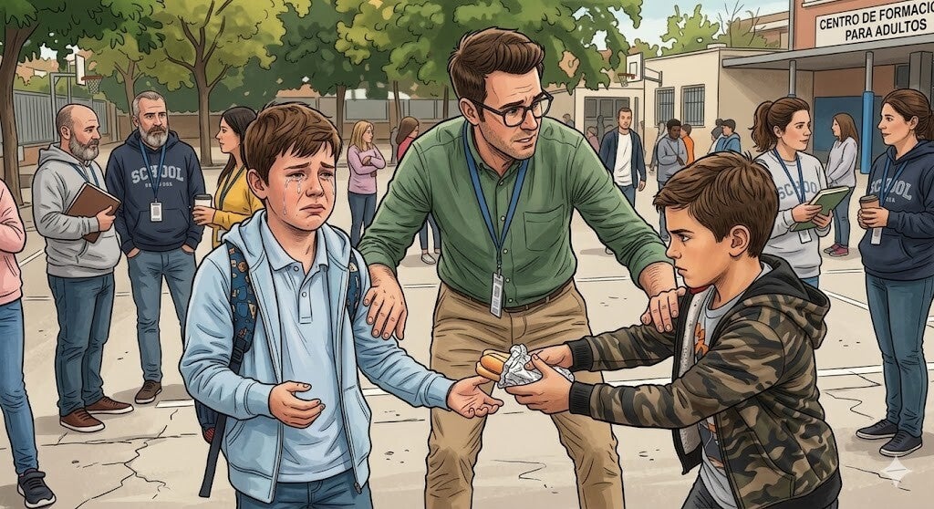 Finalmente, el profesor no consigue que se resuelva esta situación a pesar de ser una persona de autoridad, pues la situación se vuelve incontrolable.